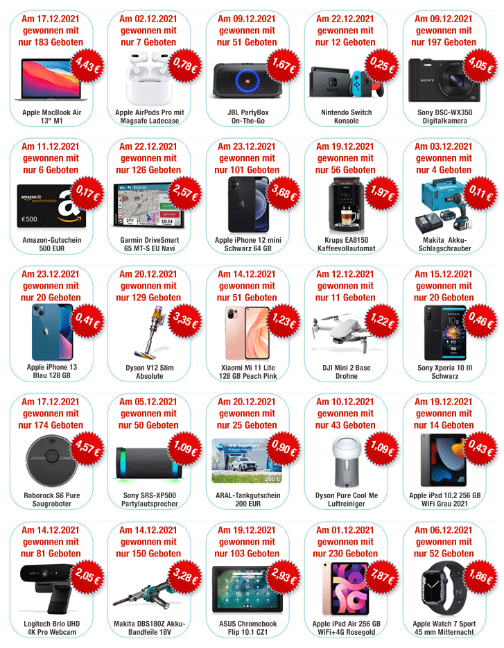 Im Dezember konnten viele Bieter ihre Wunschprodukte für Weihnachten zum Schnäppchen-Preis bei snipster.de ersteigern.